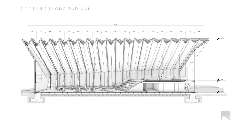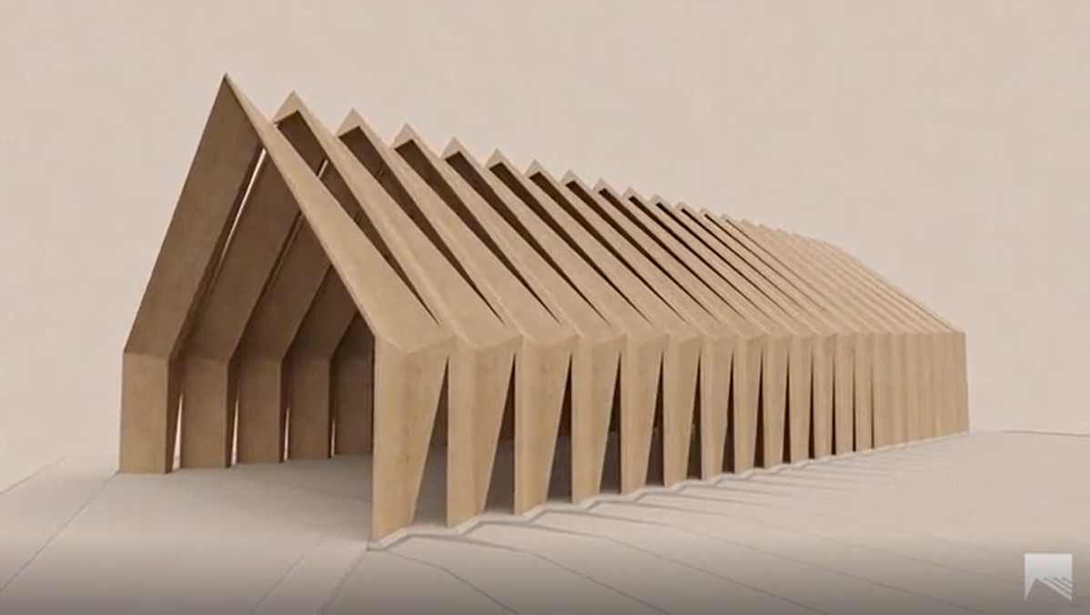 每一个拱都利用一个薄壁三角形剖面,以尽量减少结构的变形,并提升了建筑整体的刚性。